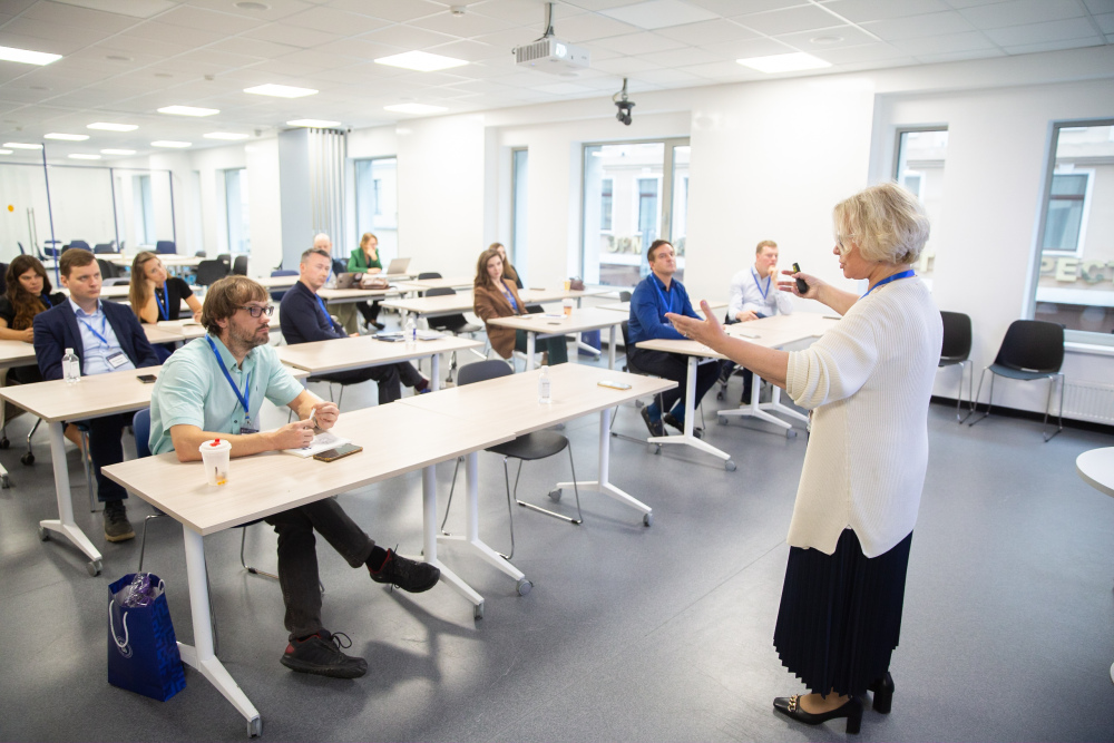 Вторая часть образовательной программы была сосредоточена на управленческих и технологических вызовах для руководителей. Профессор Высшей школы бизнеса НИУ ВШЭ Сергей Филонович выступил с лекцией «Проблемы современного менеджмента», отметив необходимость изменений в стиле лидерства.