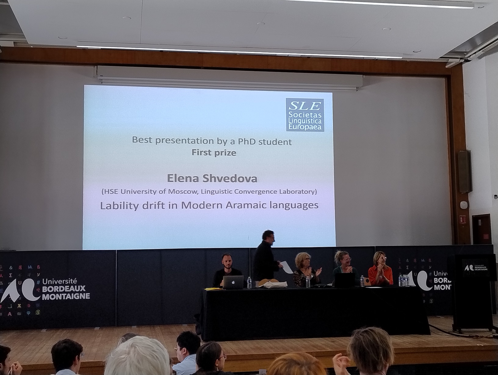 С 26 по 29 августа в Бордо (Франция) состоялась крупнейшая ежегодная конференция по лингвистике Societas Linguistica Europaea, в которой приняли участие аспиранты и исследователи из НИУ ВШЭ. Работа Елены Шведовой “Lability drift in Modern Aramaic languages” была высоко оценена членами экспертного сообщества и заняла первое место среди докладов аспирантов. О своем исследовании и самой конференции Елена рассказала в интервью новостной службе «Вышка.Главное».